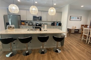 3 Bedrooms • 3 Bathrooms (2 full, 1 half) 3 Baths (2 full, 1 half) • Sleeps 1-12Welcome to Whistle inn 2. Spacious 2400 square foot plus upscale brand new vacation home in Downtown Branson. Walk to everything Downtown has to offer. 2 parking spaces out front, and one in back to avoid steps. This house has huge bedrooms and lots of living space to entertain. Relax on the upper deck and watch the fireworks from the Landing in the evenings. Streaming TV’s in every bedroom, lots of dresser space and beds. Master bedroom and suite are enormous with several seating areas. Massage chair in Living Room with 75” TV and couch seating for 12. Gourmet style kitchen with 6 foot island and seating. Desk space in kitchen has monitor for your use. Ceiling fans in all rooms with remotes. Ceilings are nine feet high on first and second floors. Laundry has stacked washer dryer with granite counter space for folding or organizing. Loads of cabinets for your use. Peaceful vacation spot near all the excitement.